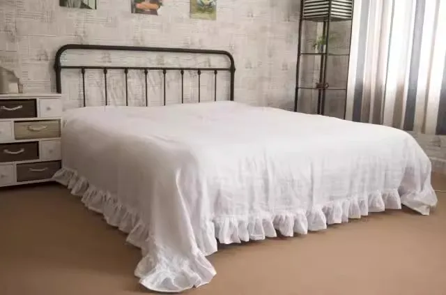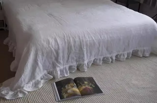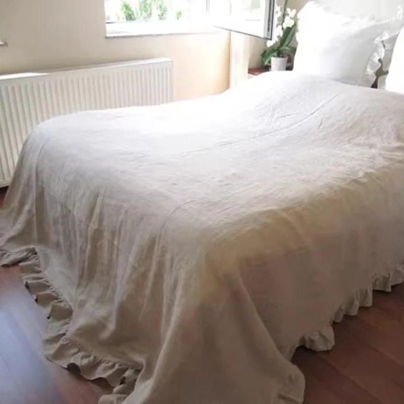 Crafted from 100% natural linen, this flat sheet is designed to bring lightness, texture, and a subtle sense of romance into your home. The delicate ruffle edges create movement and softness, giving your bedding a refined, vintage-inspired feel.