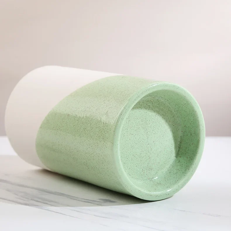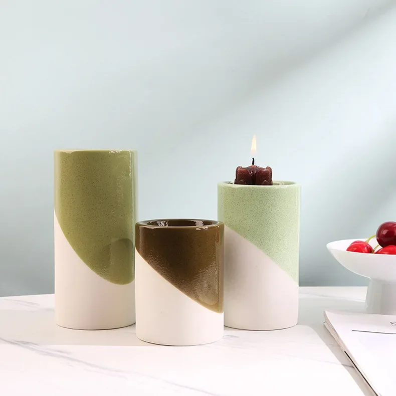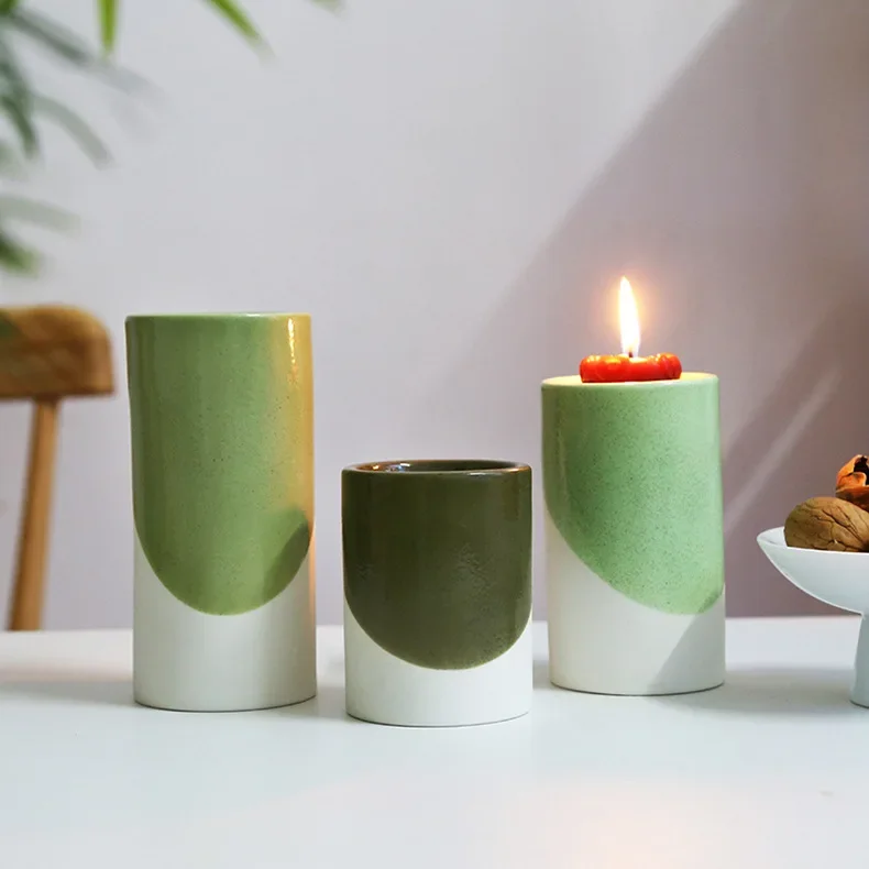 A refined set of green ceramic cylinder candle holders, perfect for creating a serene and harmonious atmosphere with a subtle touch of color.