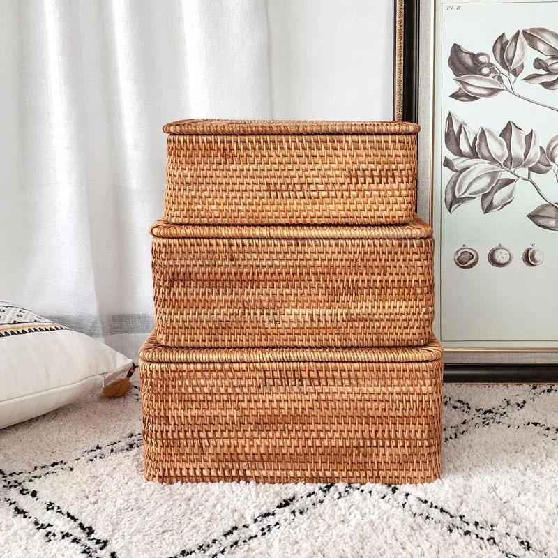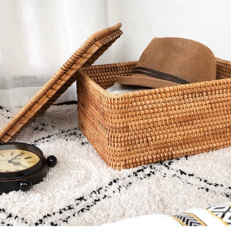 Hand-Woven Rattan Basket with Lid