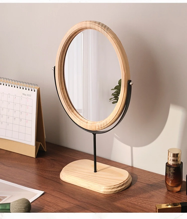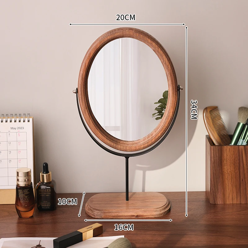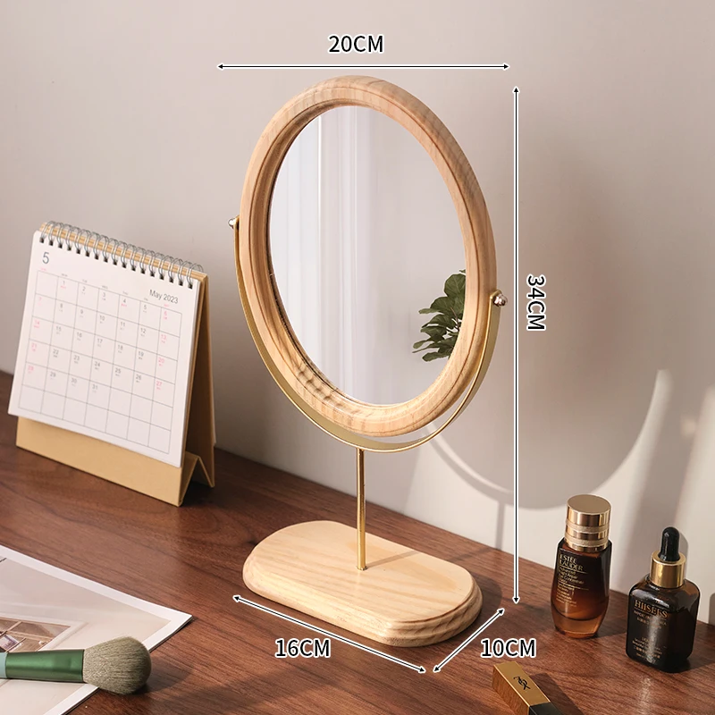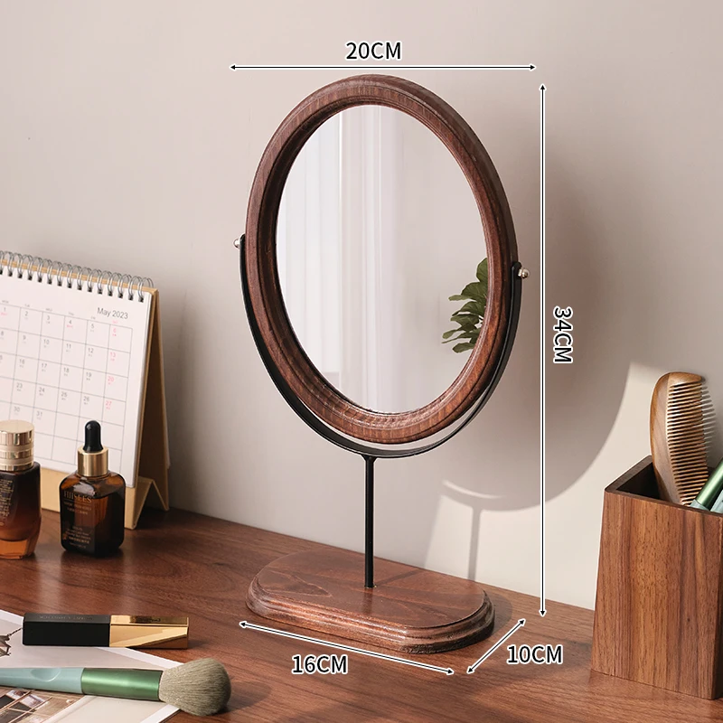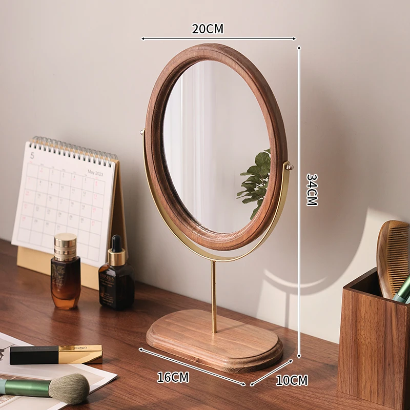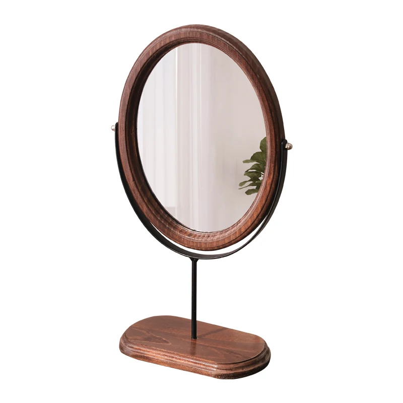 Home Bedroom Desktop Vanity Mirror, Dorm Room Retro Luxury Oval Makeup Mirror