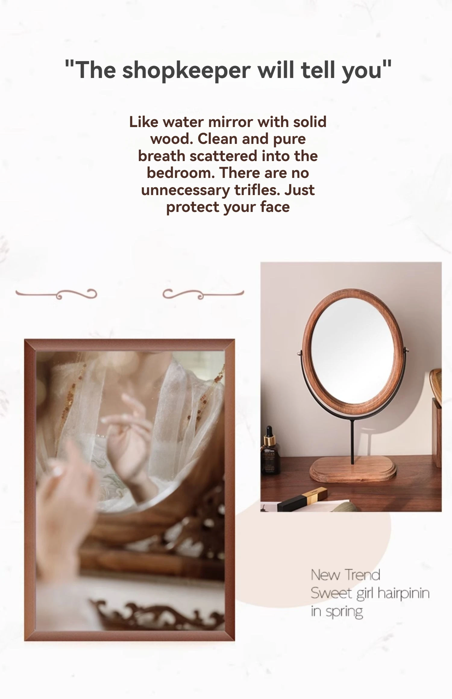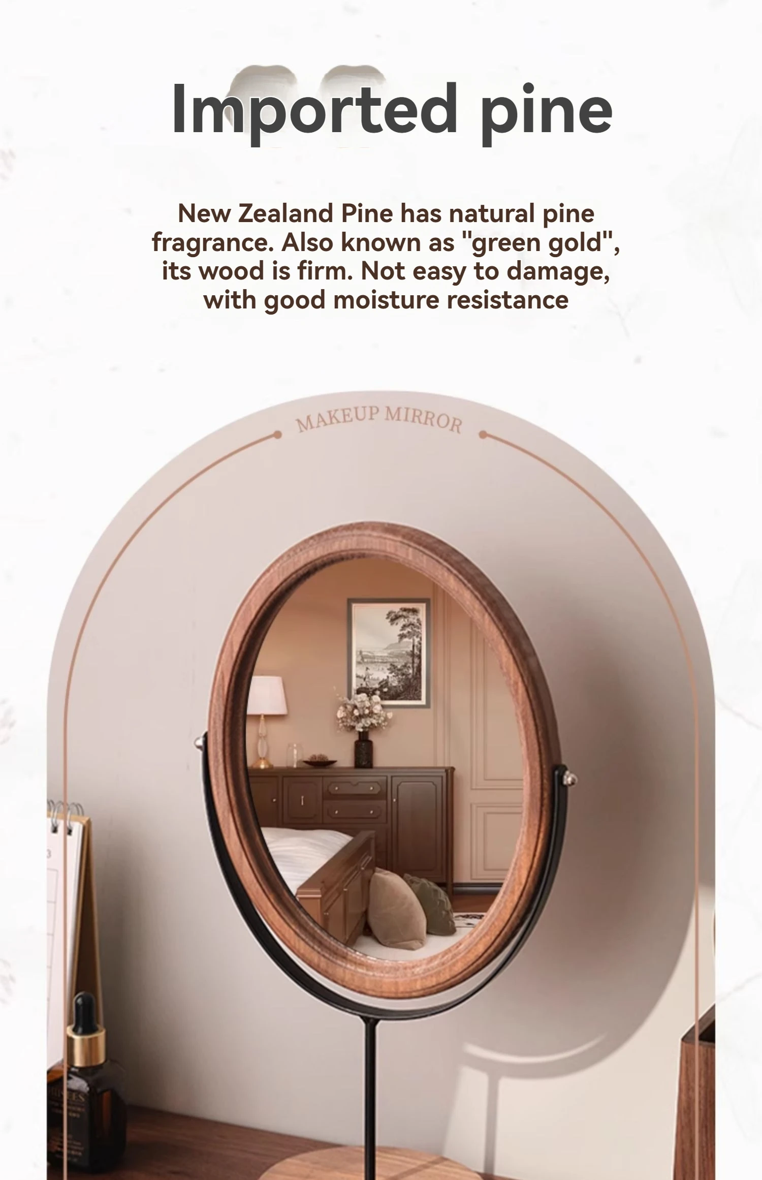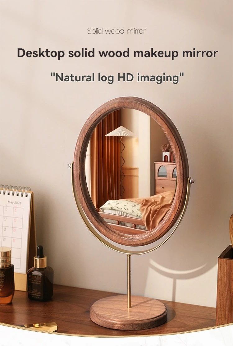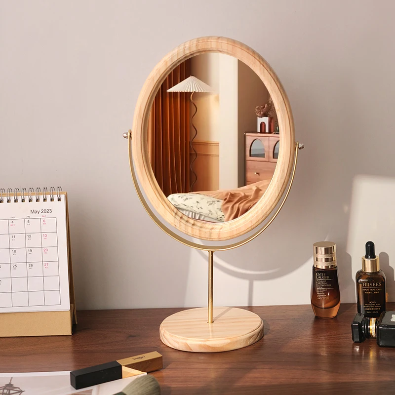 Home Bedroom Desktop Vanity Mirror, Dorm Room Retro Luxury Oval Makeup Mirror
