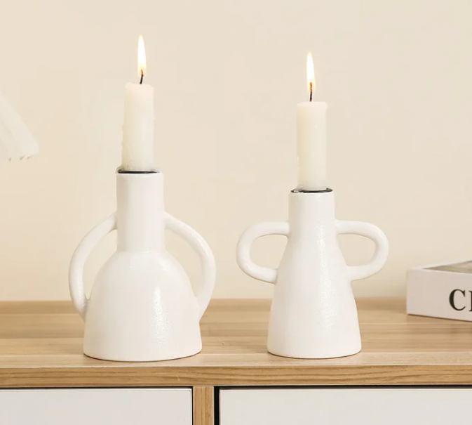 A timeless white candle holder with a minimalist design, perfect for creating a calm, refined atmosphere in any space.