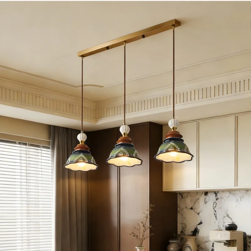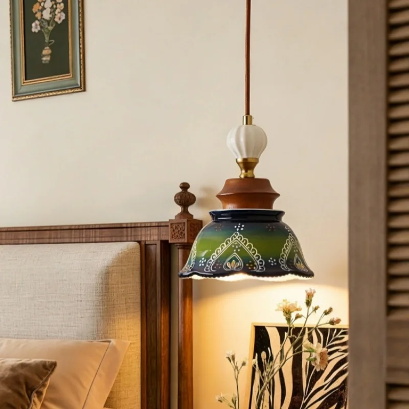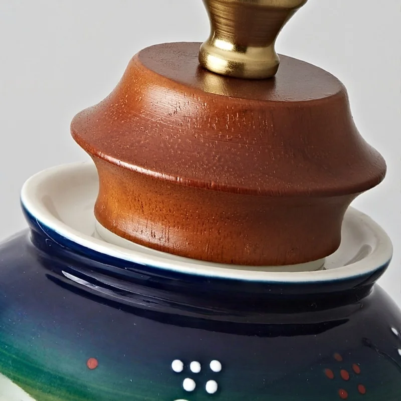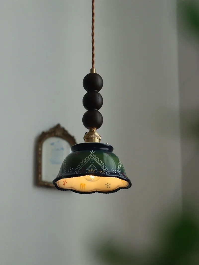 ✿ Materials: Iron structure · Copper accents · Walnut details · Ceramic shade