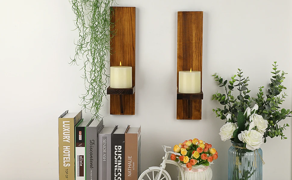 Set of 2 wooden wall candle holders, designed to add warmth and a soft, timeless charm to any space. Perfect for creating a cozy and inviting atmosphere.