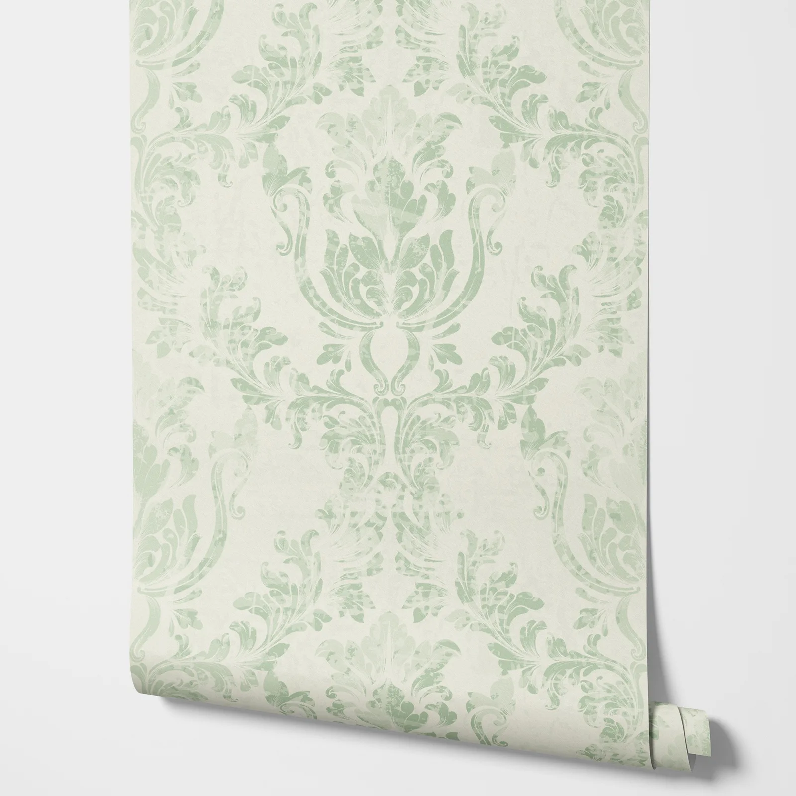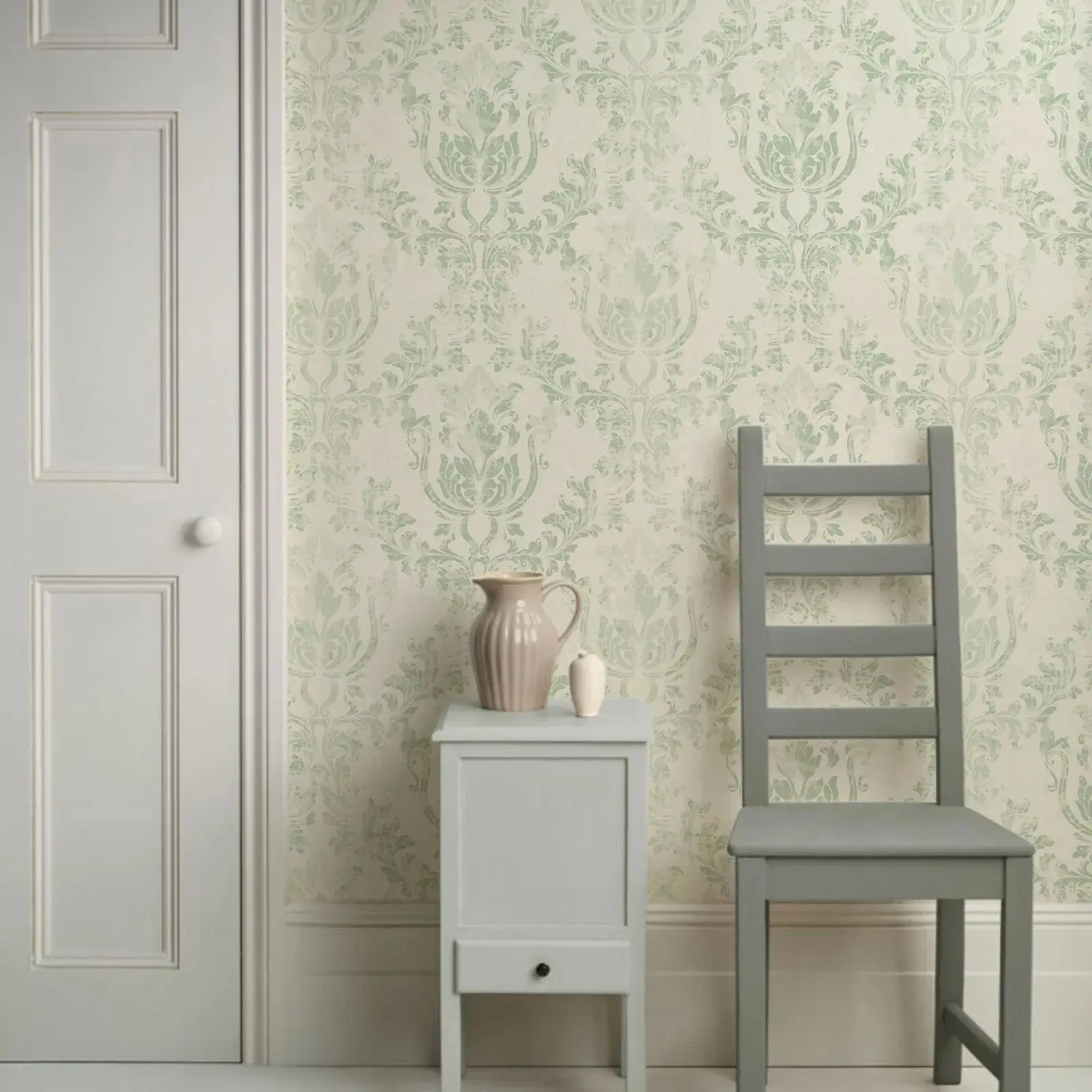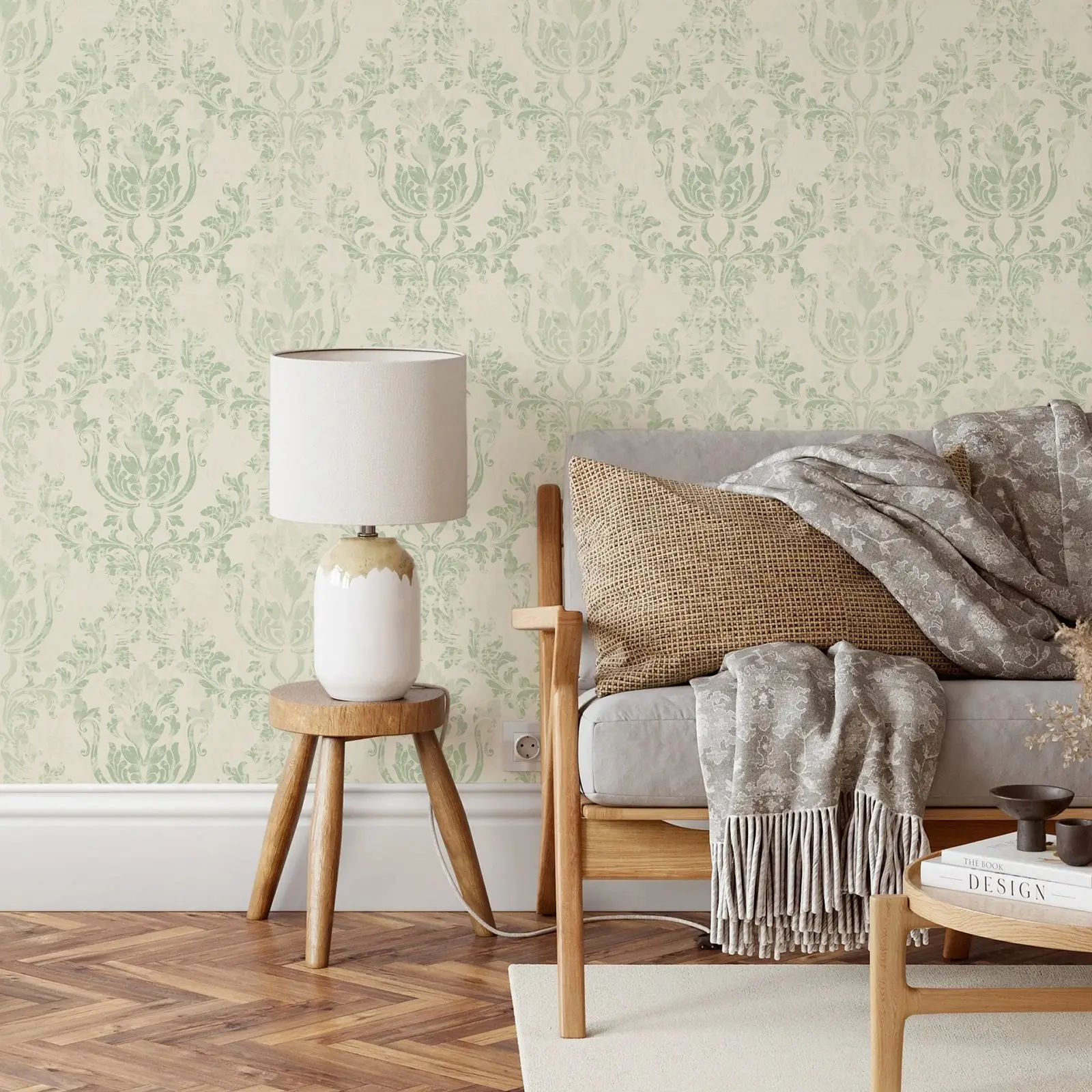 Bring timeless elegance to your walls with this vintage green damask wallpaper. Soft, classic design perfect for living rooms, bedrooms, or cozy home interiors.